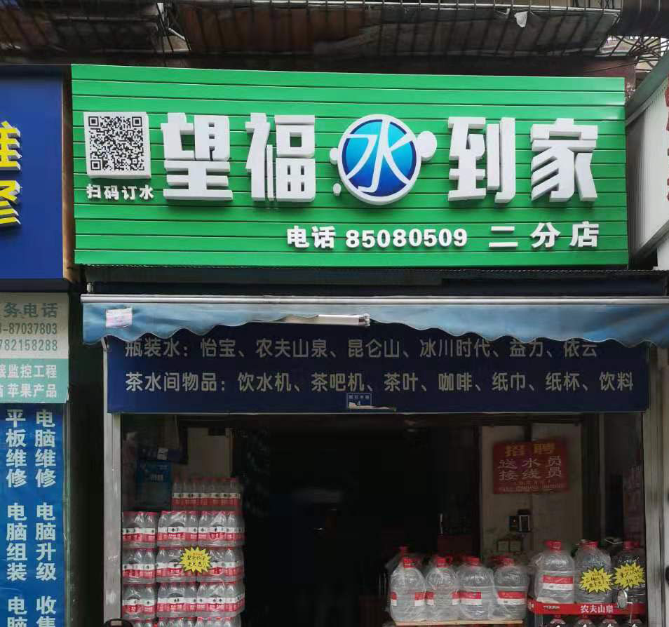 成都市錦江區望福飲用水配送店從1998年開始從事成都桶裝水配送、成都瓶裝水配送業務以來,通過20年左右的發展經營,現已發展成為擁有數百萬客戶的專業桶裝飲用水連鎖配送中心。水站下設菊樂路配送站、望福街配送站、海椒市配送站、新鴻路配送站、五塊石配送站、蘇坡配送站、西二道街配送站、南沿線高新區軟件孵化園等多個送水站點。